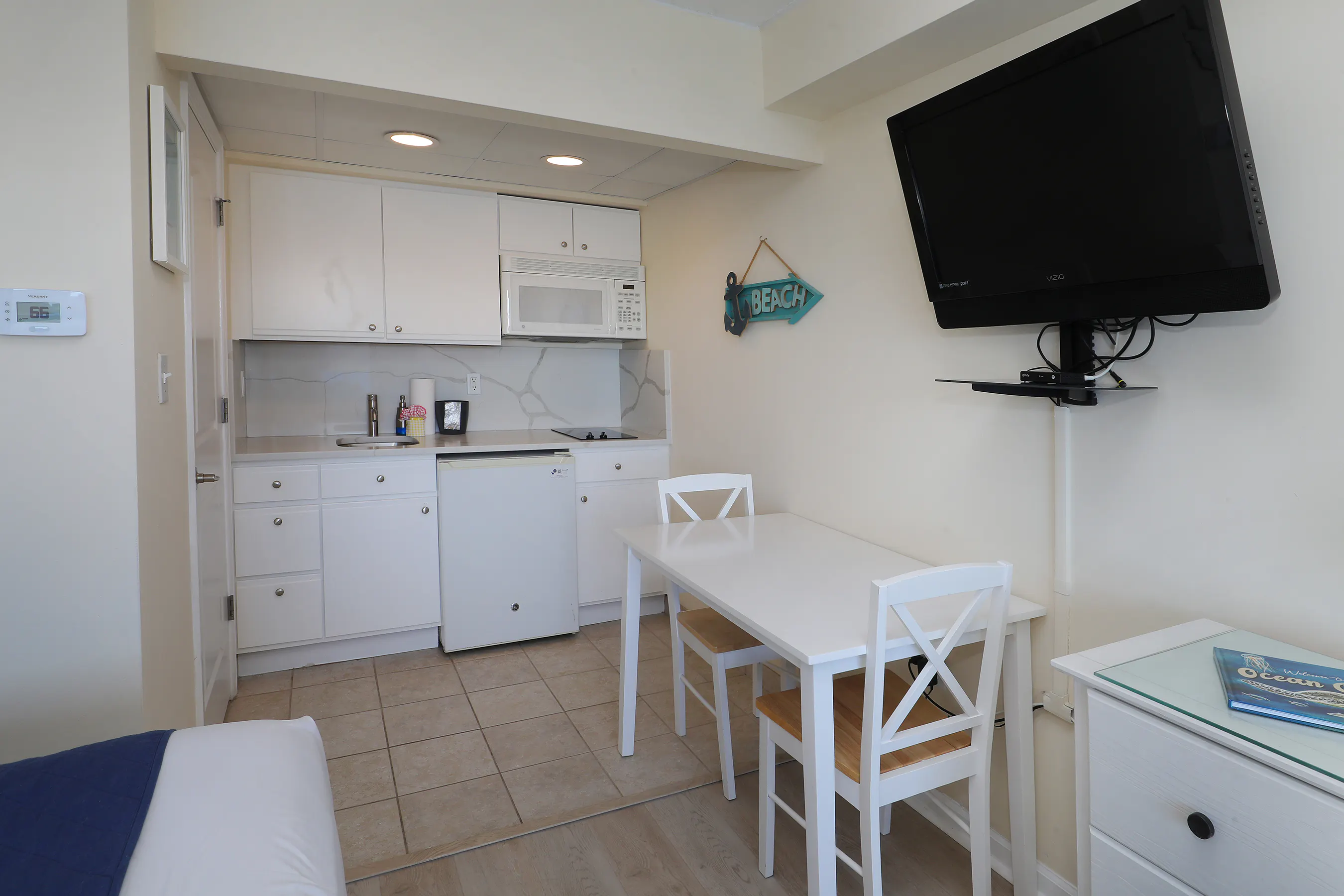 - Kitchenette with a two-burner stove